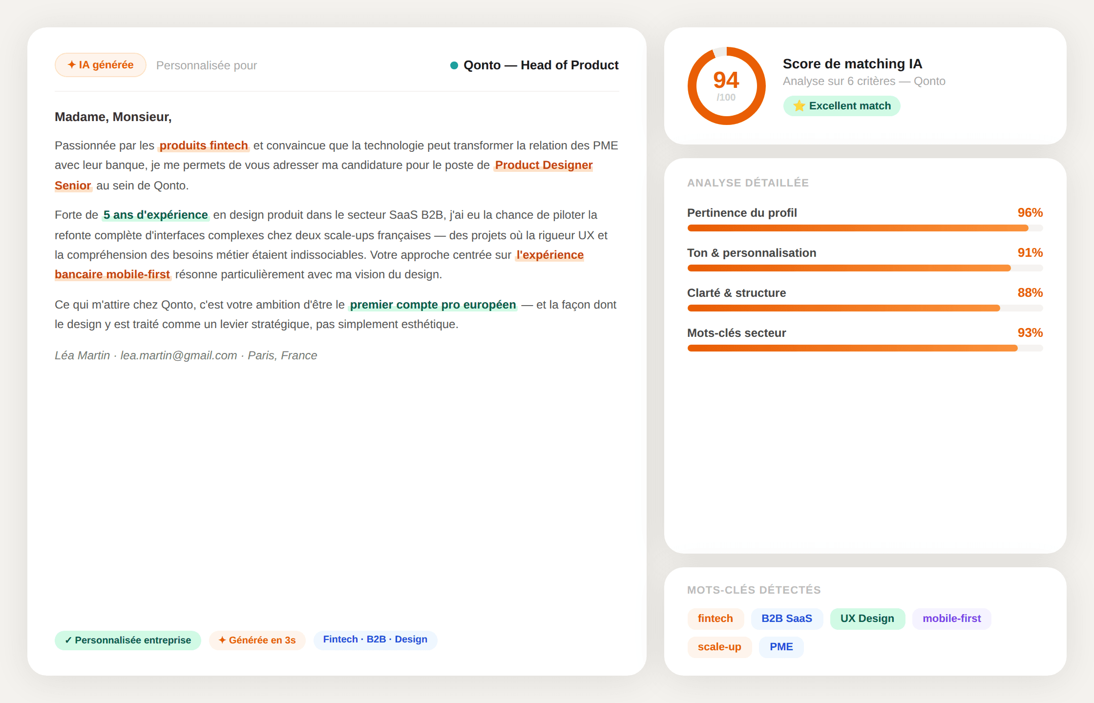 Les lettres generees par l'IA etaient bluffantes. Chaque entreprise avait une lettre unique et personnalisee.